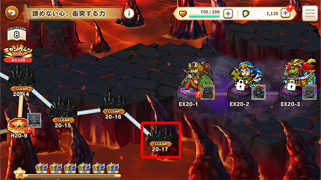 ゲーム内の『クエスト』→『メインクエスト』→『聖魔大戦編』→『20章』で『20-17』に『CLEAR』がついているかをご確認下さい。